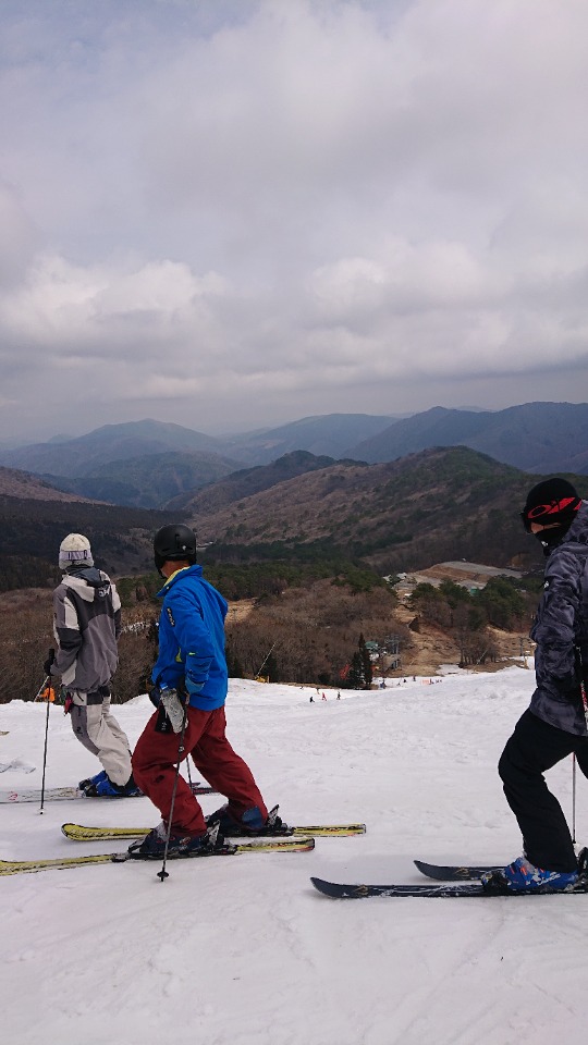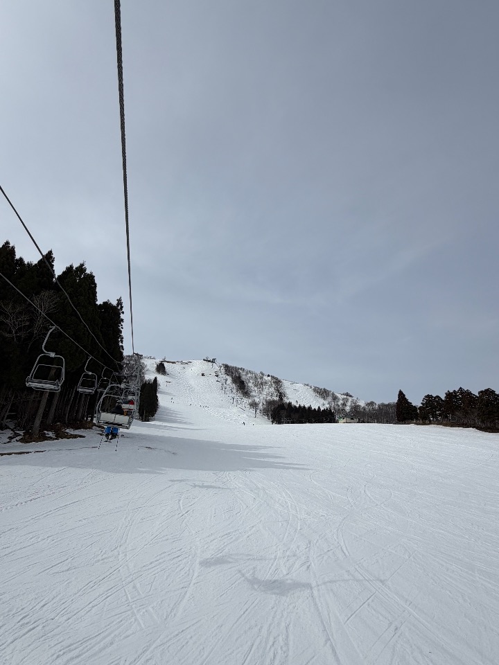 曇り空のち5時からパラパラと雨の降るモヤモヤした天候で、かつてのパウダースノーはもう味わえそうにありません。一部は非常に汚れた雪面もあり、ボードとウェアがまた泥で汚れそう…。