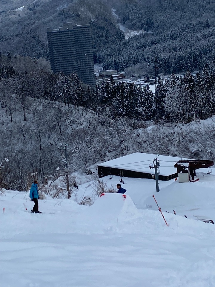 その代わりに第五クワッド沿いの中級コース端にエア台が設置されており、誰でも出来る感じではなさそうですが縦回転してる人もいました