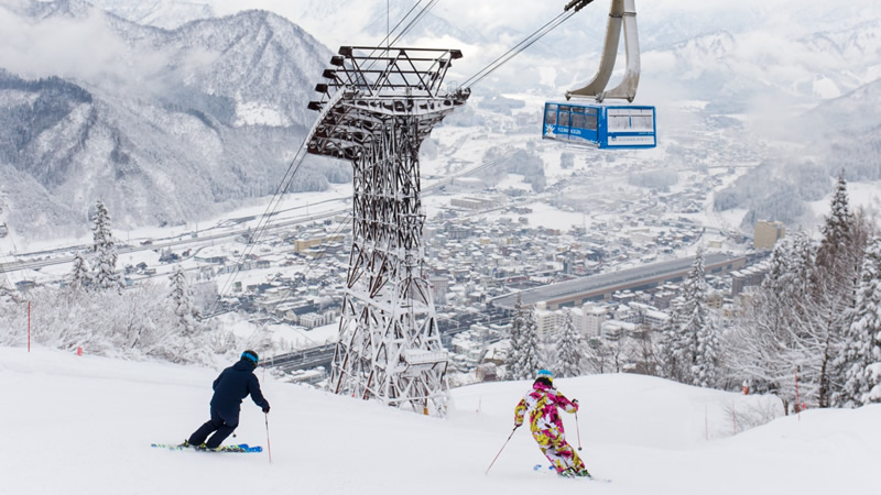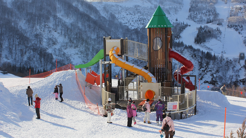 湯沢温泉街直結の湯沢温泉ゆきあそびパークにはギャラリー付き巨大100mスノーエスカレータが完備!ビギナーも安心のデビューコースや道具なしでも遊べる迫力のチュービングコースなどで思いっきり遊ぼう!また、世界最大級166人乗りロープウェイで行く最大標高約1170mの高原ゲレンデからは、越後三山や谷川連峰など雄大なパノラマが楽しめます。
